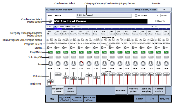 Korg has always excelled at the functional organization of sound sources, and the Kronos presents a familiar organizational structure that still makes more sense to us than virtually every other manufacturer’s alternatives: Basic sounds are your programs (Progs in familiar Korg language), while combinations (or Combis, for short) are splits and layers that contain two or more sounds, which might be Progs (commonly) or may be sounds generated by external sound modules and virtual instruments that are being controlled by the Kronos as a MIDI controller.