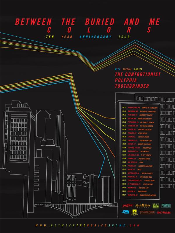 To celebrate the ten year anniversary of their classic album, Colors, Between The Buried And Me will embark on a special tour this September/October, which will see the band perform the record in its entirety! Dubbed the "Colors Ten Year Anniversary Tour", the trek also features The Contortionist, Polyphia, and Toothgrinder as support.