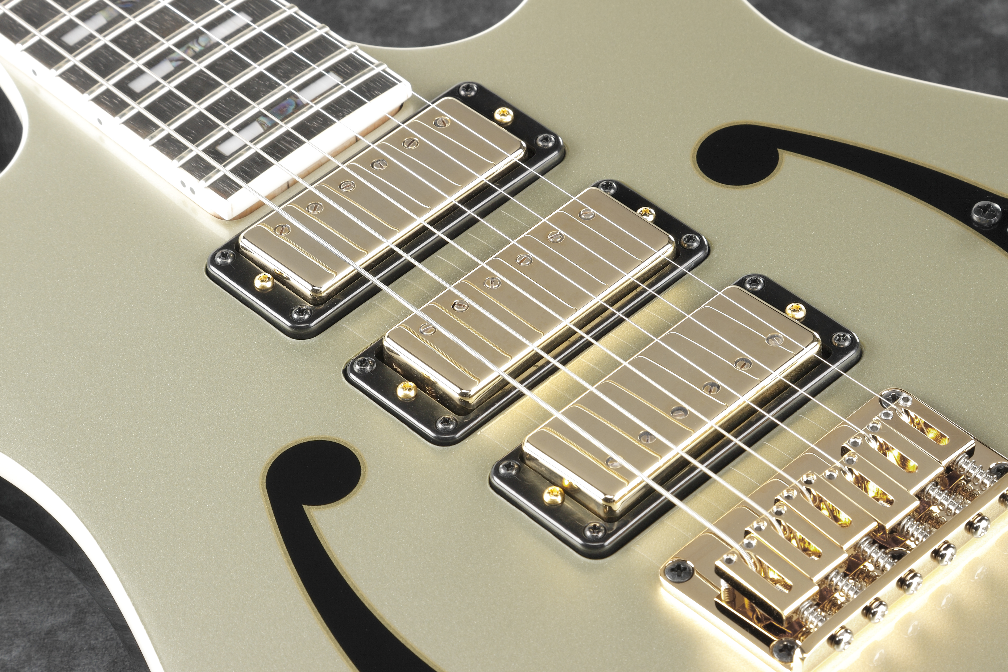 The guitar features an African Mahogany Body and a 5-piece Maple/Walnut PGM neck. The neck is topped off with a Macassar Ebony fretboard featuring Abalone/Acrylic block inlays. The tonal engine that drives this instrument is a set of three DiMarzio® PG-13™ mini humbuckers. These are Paul’s signature pickups and though they are small, they offer a thick, lush, and powerful sound that offers instant voice and character to any guitar in which they’re installed.