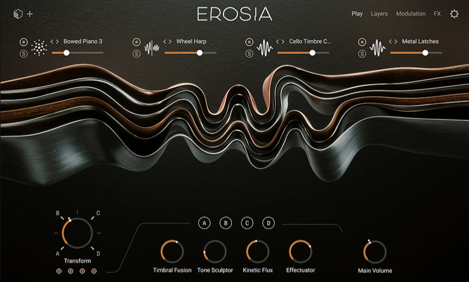 Berlin, August 28, 2025 – Native Instruments has announced Erosia, a new cinematic sound design engine that turns the raw friction, scraping, bowing, and cracking of overlooked objects into living cinematic textures. Erosia creates morphing and modulating soundscapes from materials under strain, from ice crackling across cymbals to glass vases straining under tension. Explore a palette of bowed bicycle spokes, dry ice, abandoned buildings, rusted hinges, cracked pianos, and more; each stretched to reveal a hidden resonance.