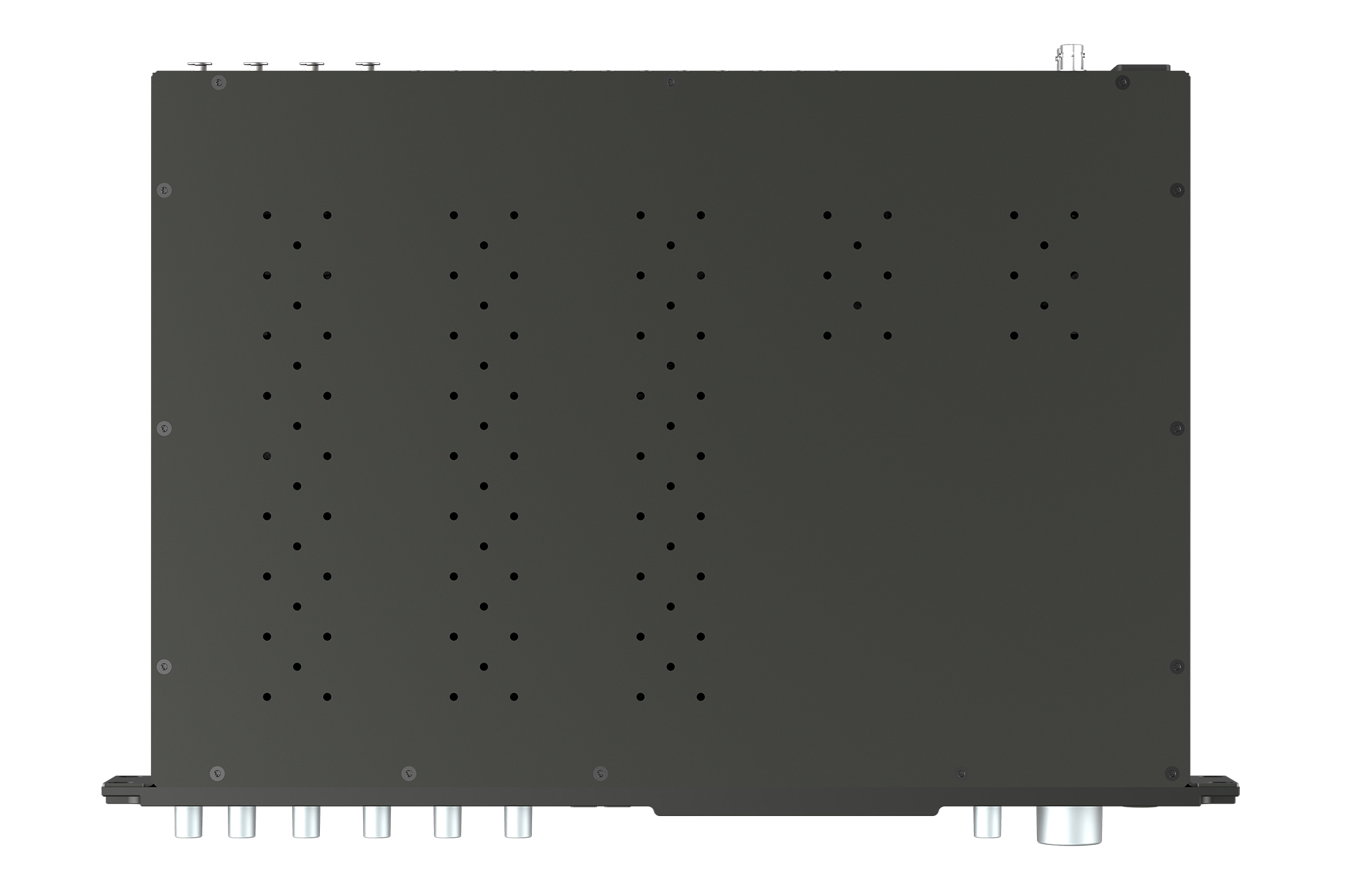 Additional audio I/O includes 8 balanced/unbalanced TRS analog (line-level) inputs and two banks of 8-channel ADAT optical I/O (switchable to stereo optical S/PDIF on bank A). All analog inputs and outputs can be calibrated with boost or trim in precise 1 dB increments. All line outputs are DC-coupled, so they may be used to manipulate and sequence voltage-controlled modular synthesizers from a host DAW. Also included are BNC word clock I/O (with optional Thru), two Thunderbolt 4/USB4 Type-C ports, and two AVB Ethernet ports.