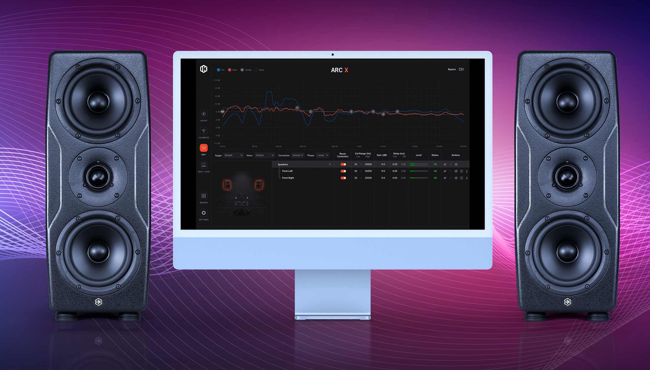 On the front panel, a large, bright 3.9-inch full-color TFT display provides luxurious, high-resolution metering for all analog and digital I/O. Custom meter configurations, such as “Analog Only” can be chosen from front-panel menu controls. Two headphone outputs provide independent volume control and fully-programmable source selection, including analog or digital inputs or outputs, mixer buses (with built-in reverb), host audio channels, or even network channels. Individual controls for preamp gain (+74 dB), -20 dB pad, and 48V phantom power are provided for the unit’s four rear-panel mic inputs. Phase invert is also provided via included software, and all preamp settings can be controlled remotely from a computer or iOS device. Control room features include talkback with front panel “Talk" button and “A/B/C” monitor select, Mute, and (sum to) Mono buttons for the designated monitor outputs, to quickly compare mixes on up to three sets of studio monitors.