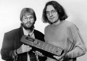 Wolfgang Düren (left) and Wolfgang Palm (right) with the Microwave, 1989.