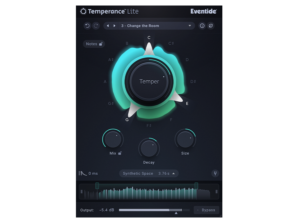 Little Ferry, NJ — October 1, 2025 — Today Eventide Audio announced the release of Temperance Lite, a groundbreaking free plug-in that introduces the world’s first musical reverb. Unlike traditional algorithmic and convolution reverbs, Temperance Lite lets you control reverb resonances using the familiar 12-note chromatic scale, giving you control over which notes bloom or wither within your chosen space.
