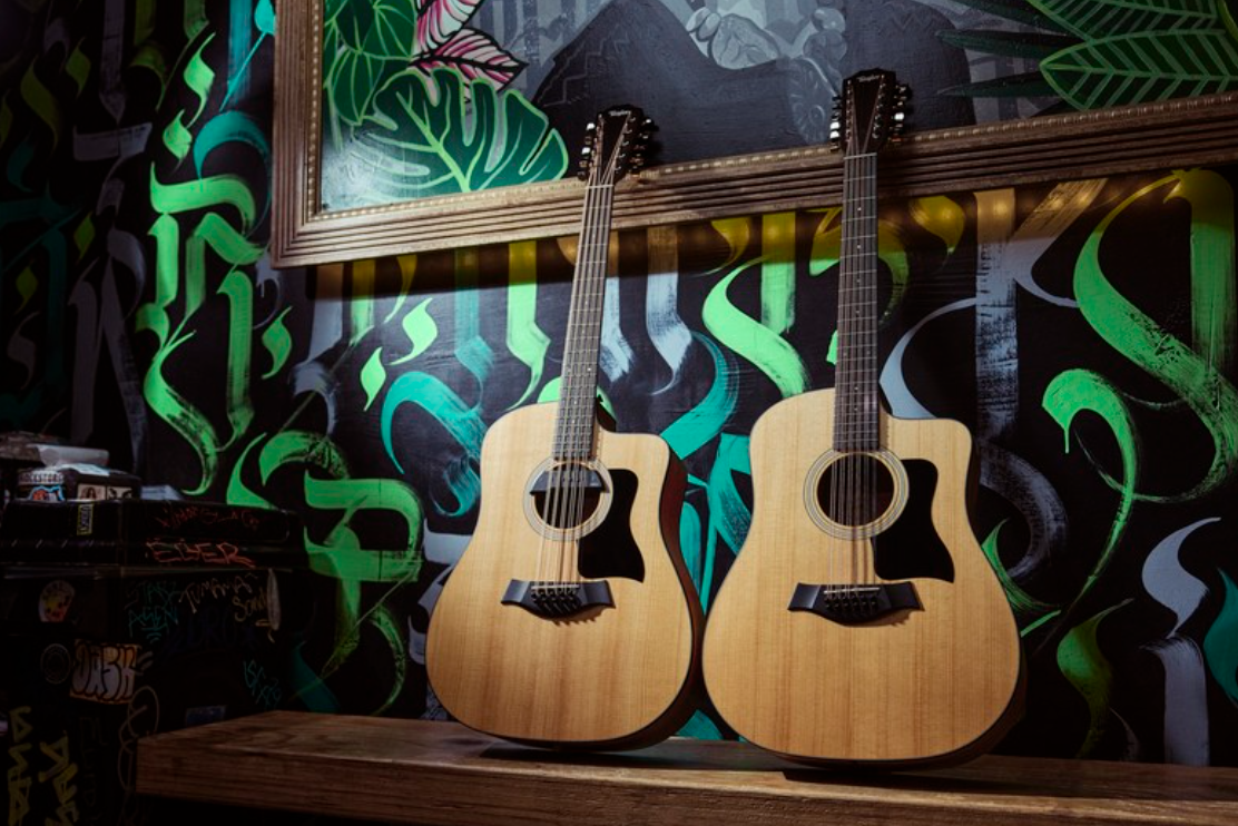 Each new model features a cutaway Dreadnought body, onboard electronics, a slim, easy-playing Taylor neck, and C-Class bracing, a variant of the company’s patented V-Class® bracing, engineered to enhance volume, sustain, and intonation. D’Addario custom string sets for their respective tunings, and an offset bridge-pin and string-ramp setup that boosts the resonance and responsiveness without the string interference typical of traditional 10- or 12-string designs.