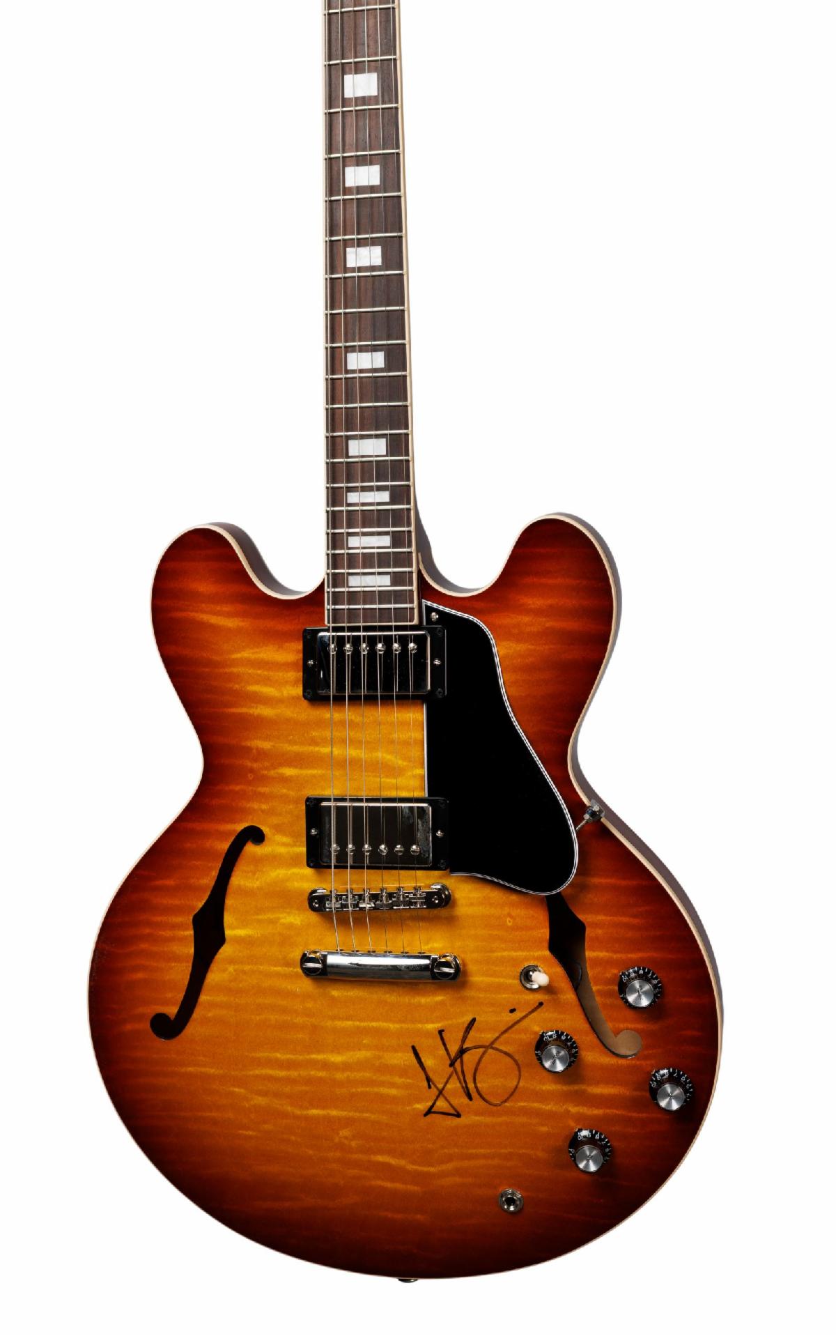 DJO (JOSEPH DAVID KEERY) - GIBSON ES-335 FIGURED, IN ICED TEA BURST, HAND-SIGNED BY DJO
