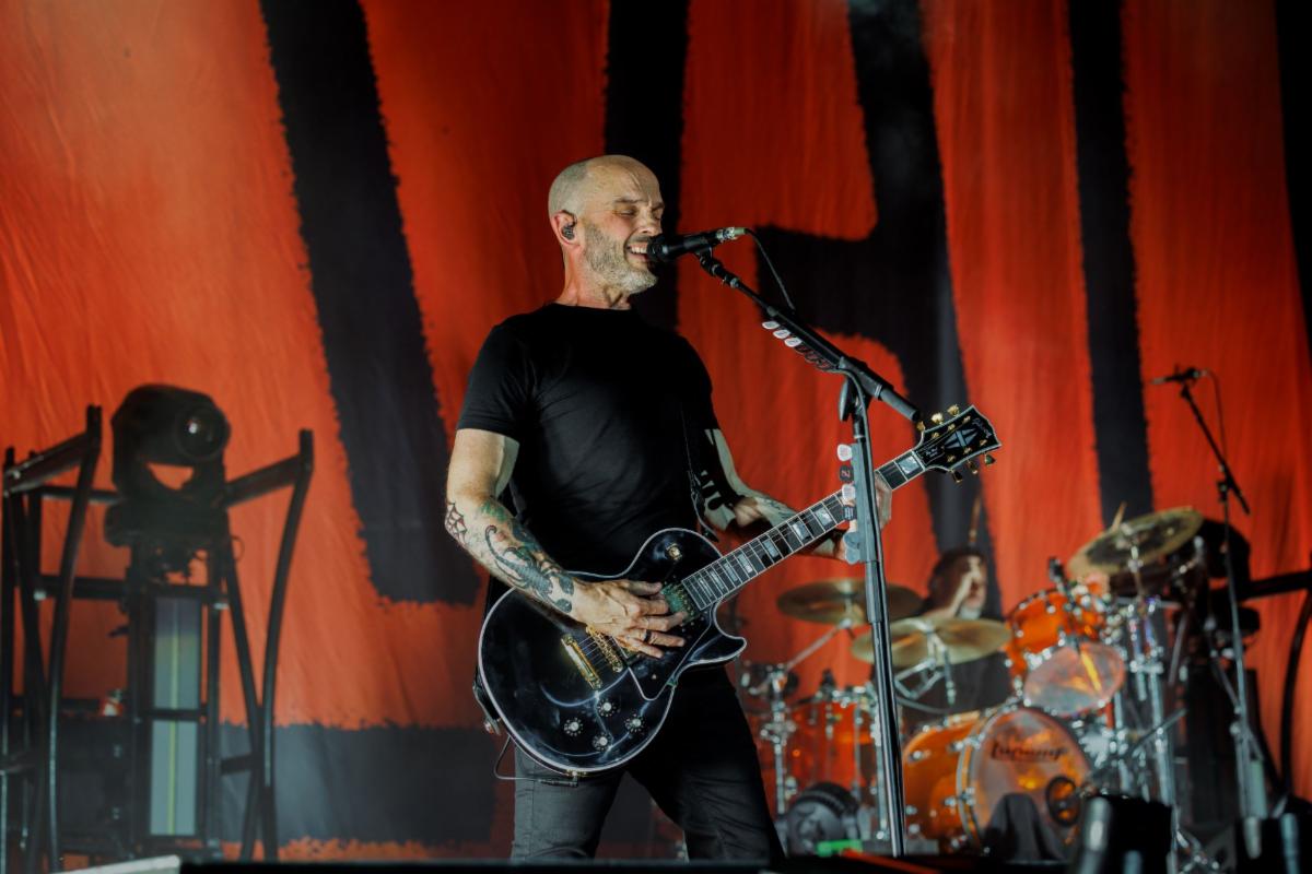 RISE AGAINST - GIBSON LES PAUL CUSTOM 70s, IN EBONY, STAGE-PLAYED AND HAND-SIGNED BY RISE AGAINST