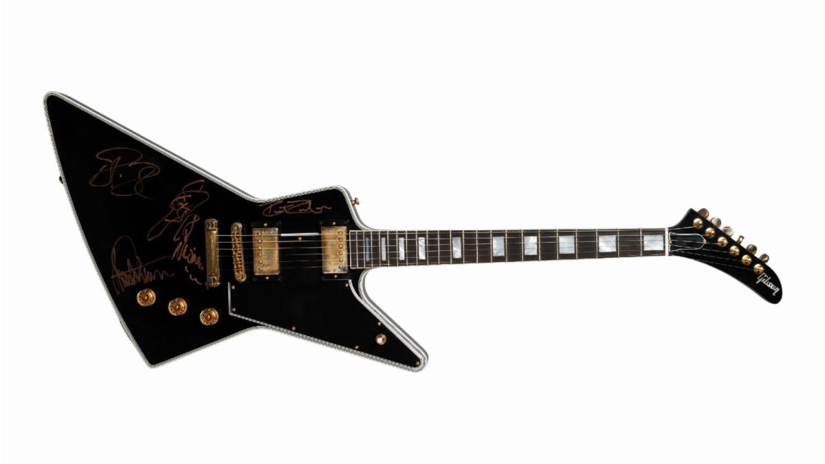 Gibson and Julien’s are thrilled to offer a highly collectible piece of rock history from Gibson Custom in Nashville. This Gibson Explorer from Gibson Custom is hand-signed by the iconic rock band Cheap Trick.