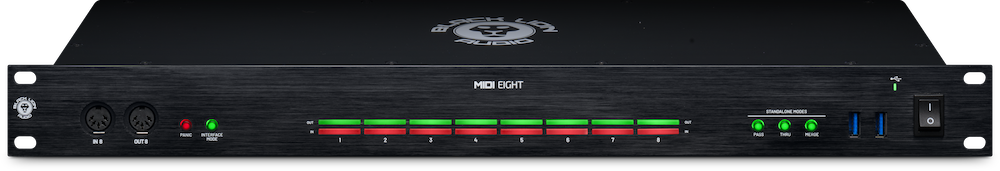 Housed in a sleek black aluminum enclosure with a vibrant LED MIDI monitor, MIDI Eight brings style and clarity to any equipment rack. It is rugged, reliable, and surprisingly handsome — Black Lion Audio has managed to do something few thought possible: they made MIDI sexy.