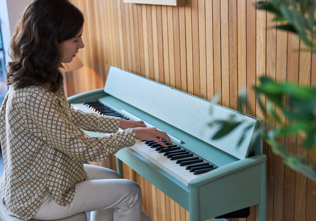 Based on the award-winning design of the KF-10—the original KIYOLA piano—the KF-20 offers a soft, elegant look with gentle curves. It’s available in Pure Oak, Sheer White, and Walnut finishes, as well as a new Celadon Green option. This vibrant, modern finish was developed based on Karimoku’s research and case studies, as well as perspectives from global design leaders.