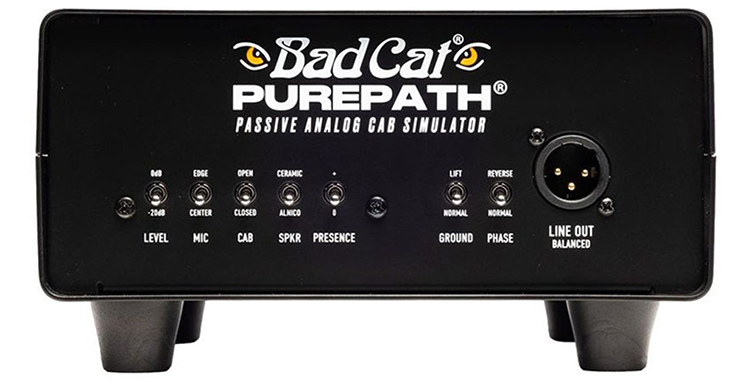 Bad Cat: The Bad Cat Purepath Passive Analog Cab Simulator bucks the trend of reactive load boxes with IRs and instead delivers a fully analog, completely passive, load box for direct recording, silent stage performance, and more. Plug your amp’s speaker output into the PPACS, connect the balanced line out to front-of-house or a recording interface, and you’re set. If you want a speaker on stage, there’s a passive pass-through to connect it, too. The load box has a series of switches and filters that let you customize the sound.