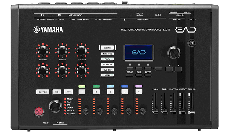 The upgraded system features a new DSU50 stereo condenser microphone for next-generation, true stereo sound reproduction. It mounts on your kick drum as before but combined with the upgraded EAD50, delivers even better results. Blend the natural mic sounds with samples from Yamaha’s sound library if desired, dial in your desired room reverbs and other effects, and go. It’s great for maintaining a consistent live drum sound at gigs as well as for recording. Eight outputs provide plenty of control, and you can even add additional studio microphones to the EAD50 for further sonic refinement.