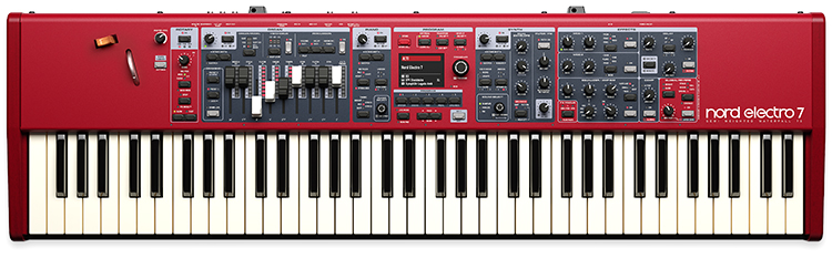 We were thrilled to see that there are now pitch bend and modulation wheels on all 73-key models, and physical drawbars with LEDs on all models as well. It comes in a 61-key synth action version as well as 73 key, weighted waterfall keyboard, or their triple sensor Kawai Hammer Action keyboard. It certainly delivers everything you expect from a Nord: red, pricey, and sounds great!