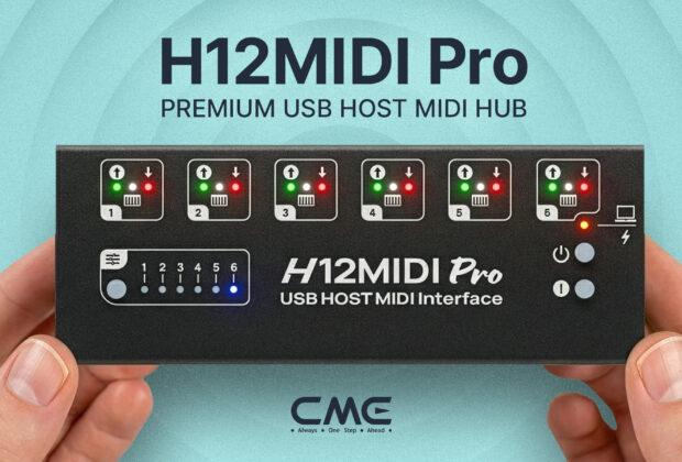 CME today announces the start of production for the H12MIDI Pro, a compact standalone MIDI hub designed to simplify complex hardware and hybrid MIDI setups. The device combines USB Host connectivity, TRS MIDI I/O, and advanced routing capabilities in a portable aluminum enclosure.